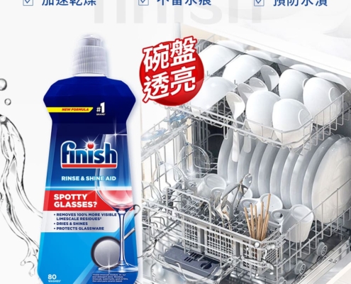因此,若有去水垢、加速乾燥、提升光澤的需求,推薦選擇更為安全、有效的 finish 亮碟洗碗機光潔劑。