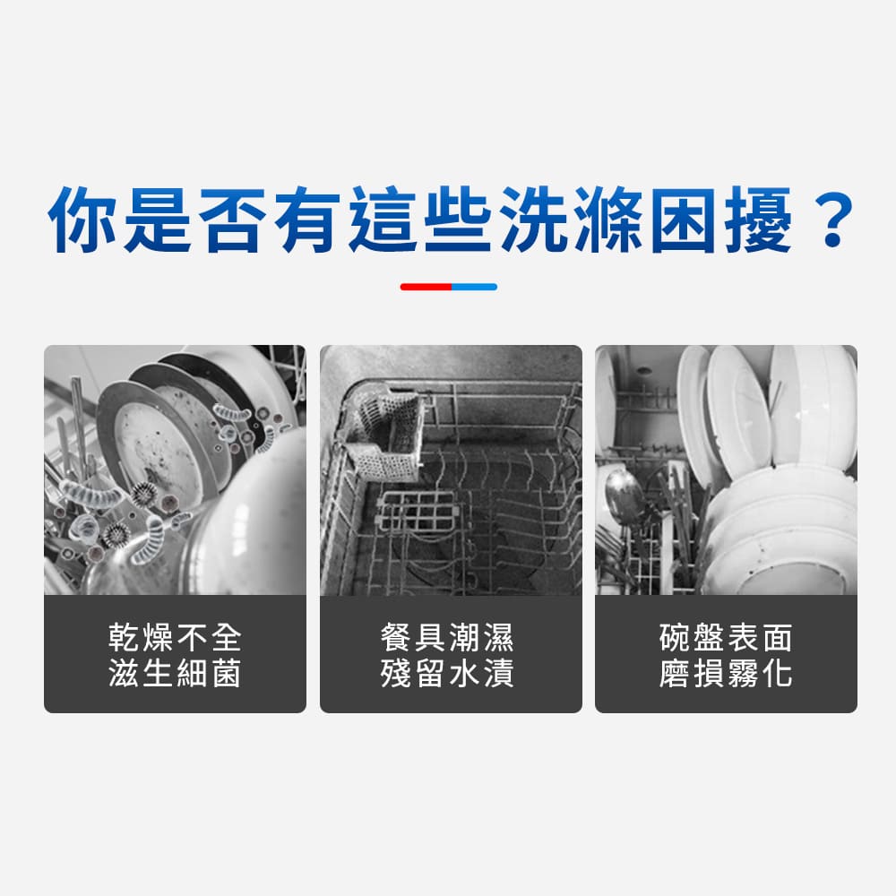 如果沒有使用光潔劑,碗盤與機槽更容易產生水垢、水漬、水痕,若機體內常常過於潮溼,還有可能會滋生黴菌、細菌,影響清潔效果。
