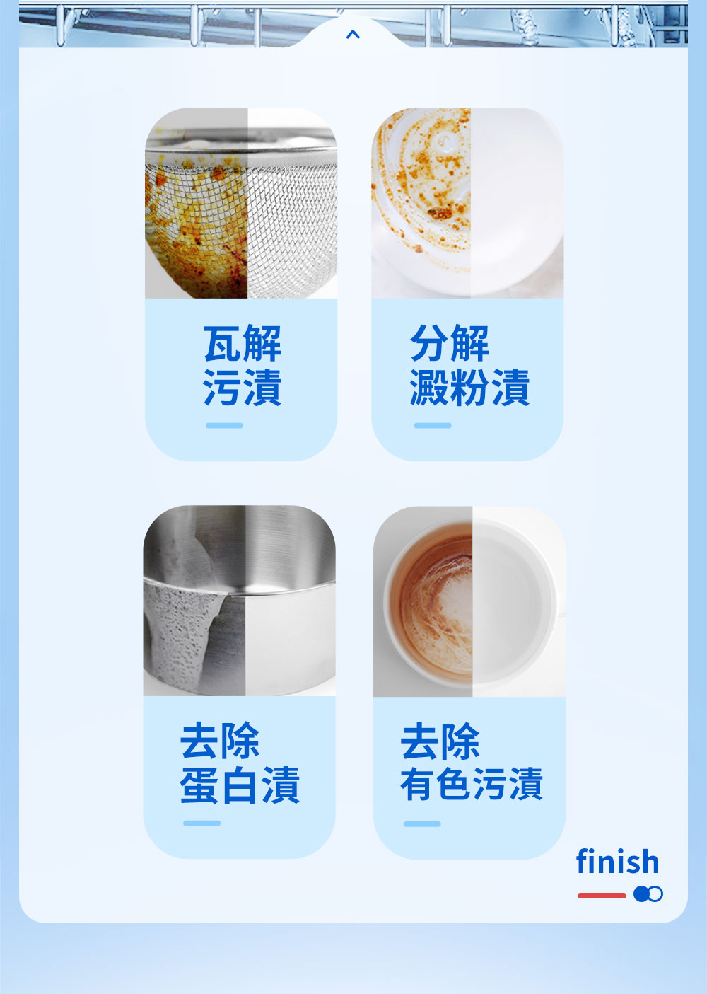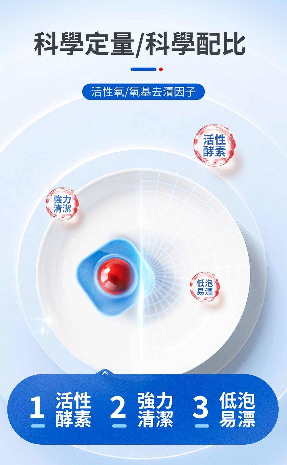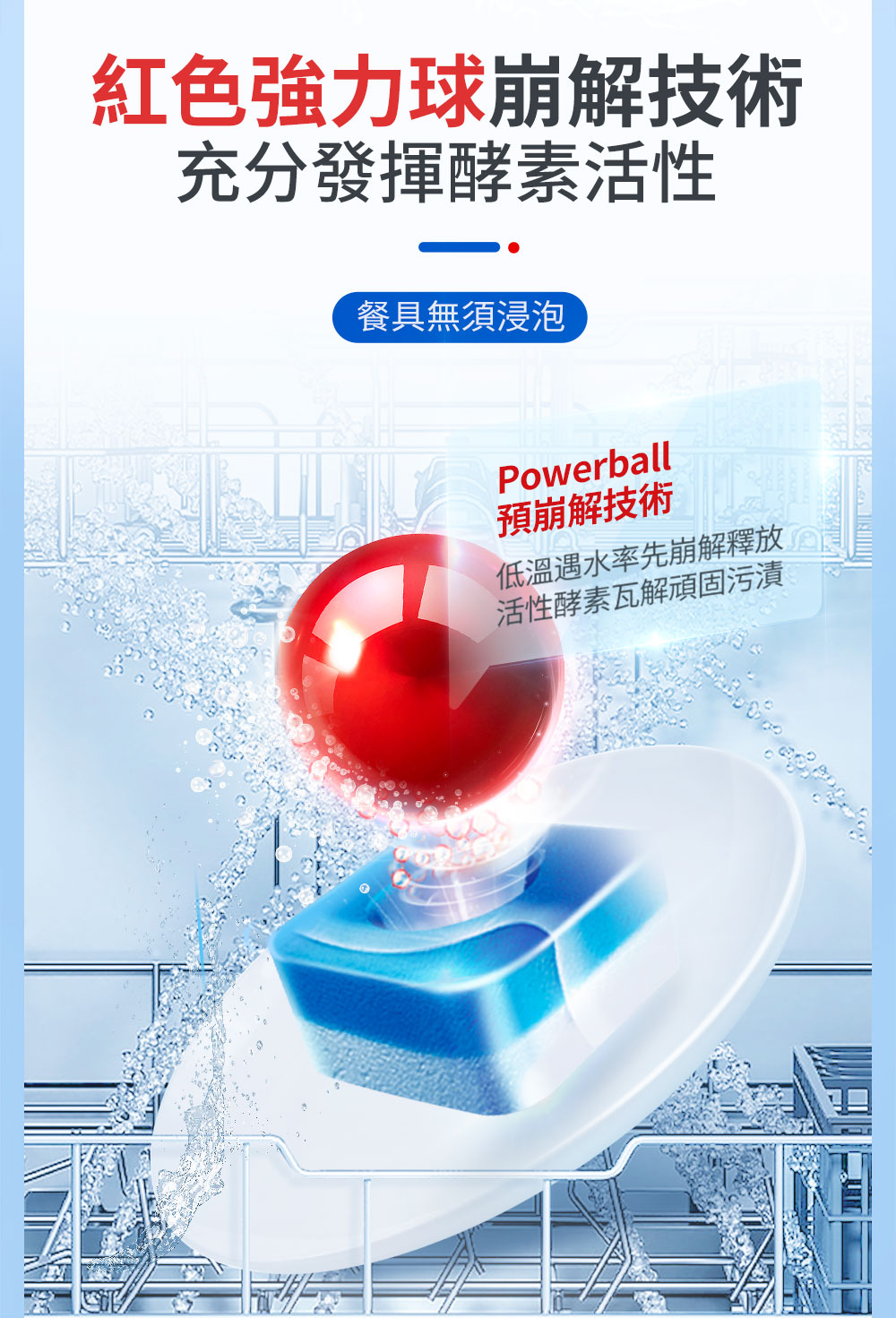 含有酶及表面活性劑,有效浸泡和分解食物殘留。