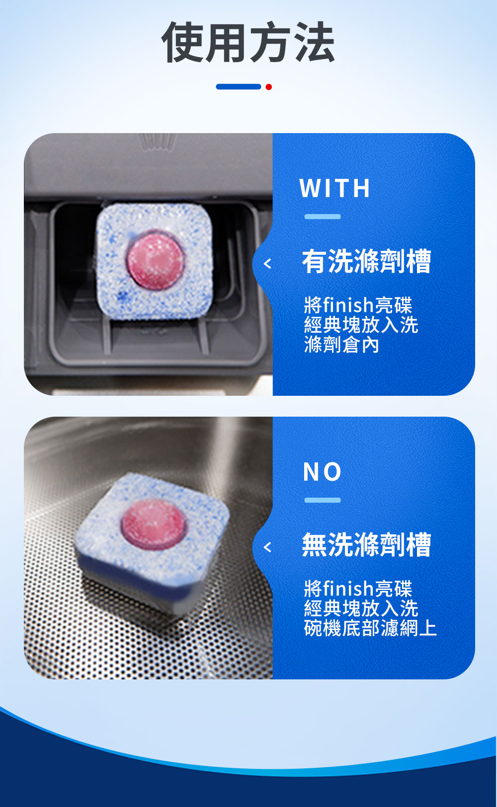 1)洗碗塊應平放勿站立,一次一塊。